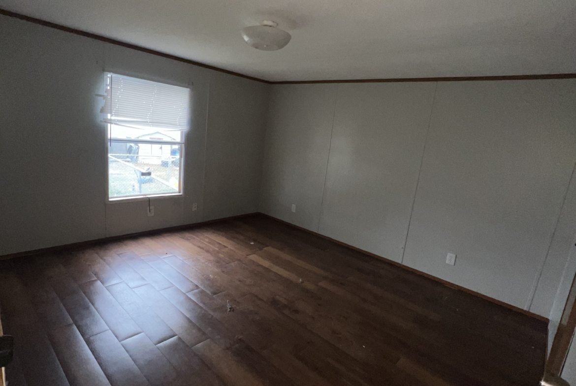 The home is available for owner financing with a $3,000 down payment and $1,250 monthly, or you can rent for $1,250 down and $1,250 monthly. Lot rent and utilities are separate, giving residents flexibility in managing monthly expenses. Currently vacant, the property is ready for immediate occupancy, allowing new owners to move in or prepare it for rental without delay.